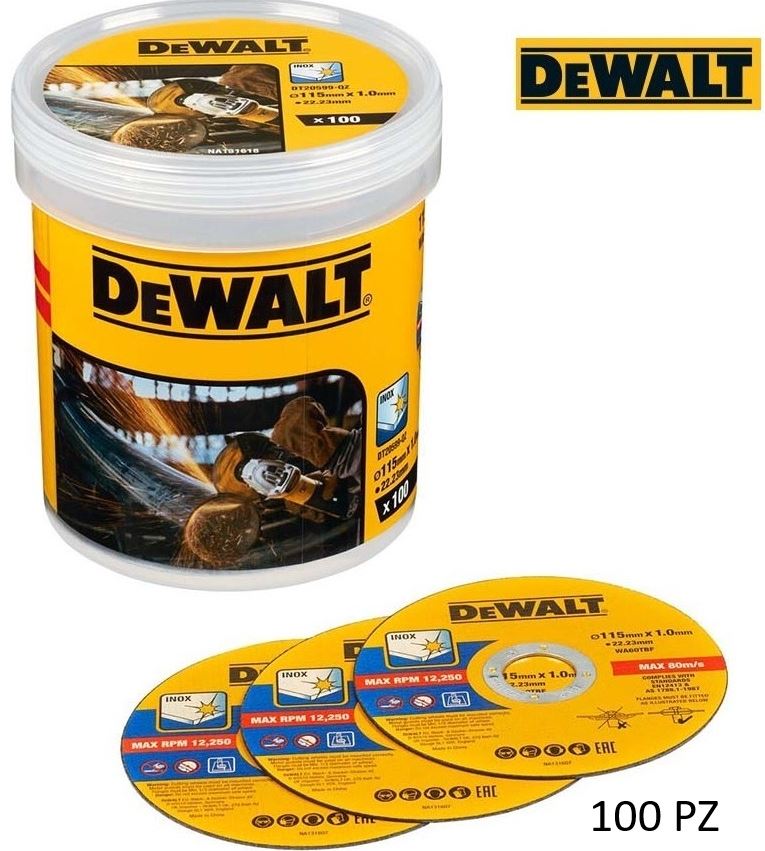 DEWALT – 100 discos de corte de 115 x 1 mm para amoladora de acero inoxidable