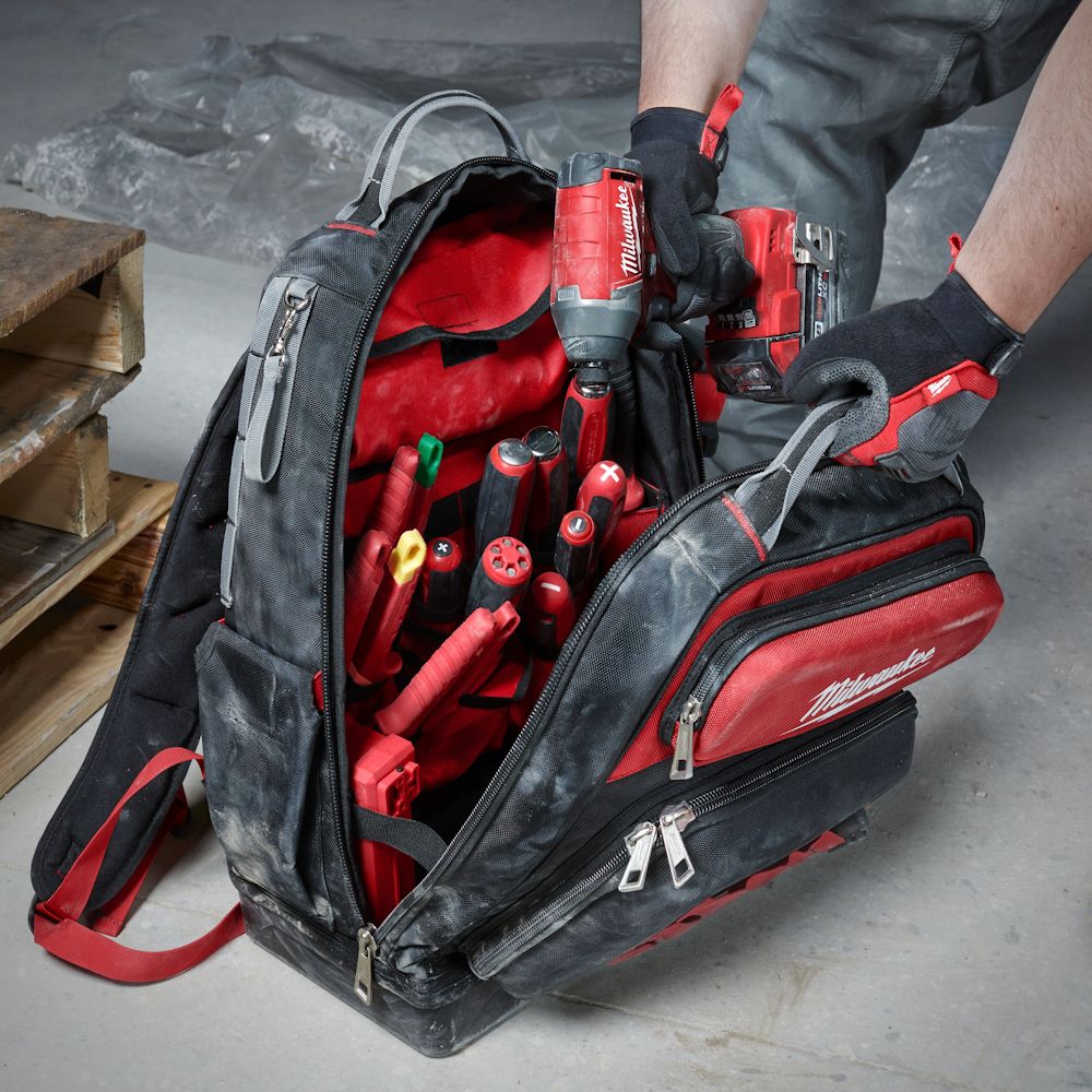 MILWAUKEE Mochila de obra para herramientas con múltiples bolsillos y fondo rígido